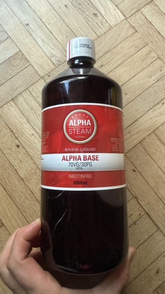 Und 1 Flasche Alpha Steam Base 70 VG / 30 PG (MHD 06/24).