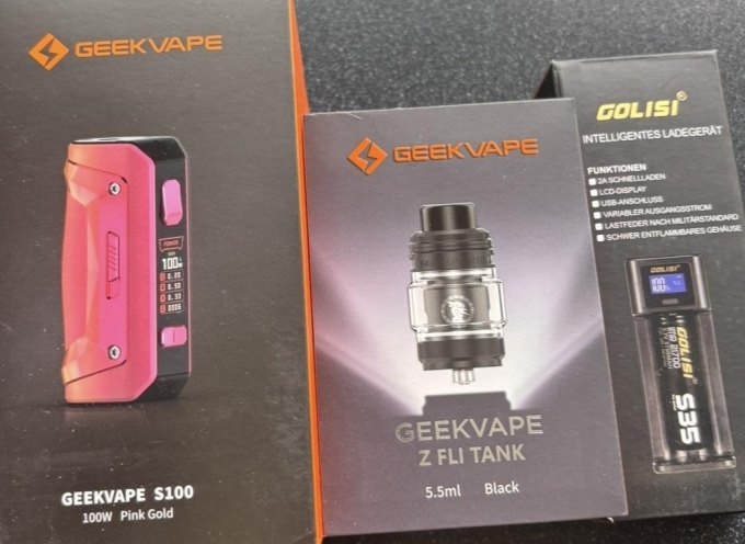 Hier Verkaufe ich mein sehr selten benutztes Verdampferset von Geek Vape vorhanden ist: