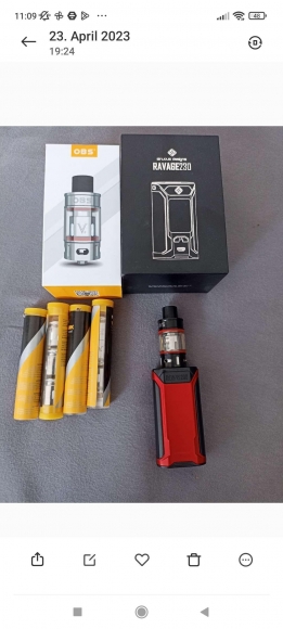 Hallo verkaufe hier eine Revange 230 mit einem ob\\\\s verdampfer dazu gibt es ein Ersatzglas und noch ca 20 coils LG Akkus Eventuell auch .