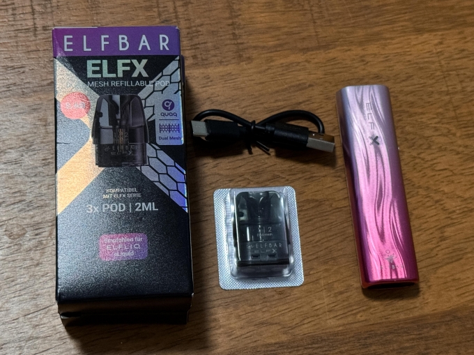 Elfbar ElfX in pink mit 6 Ersatz Pods in 0,6Ohm und Ladekabel